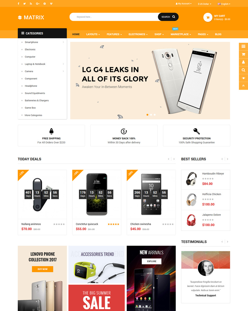 Matrix is one of the Best Electronics OpenCart theme built for any trending HiTech Shop, Fashion store,or any eCommerce site. This OpenCart theme has full of functioning features of a modern template for any eCommerce website. With multi-homepages, customers easy choose the design matching with their products and many powerful extensions accompanied with