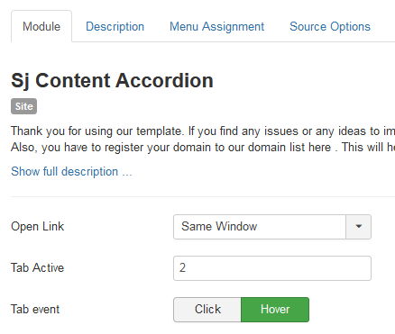 The following documentation is applied for packages from version 1.0 of SJ K2 Accordion, SJ Virtuemart Accordion and SJ Content Accordion Joomla modules.