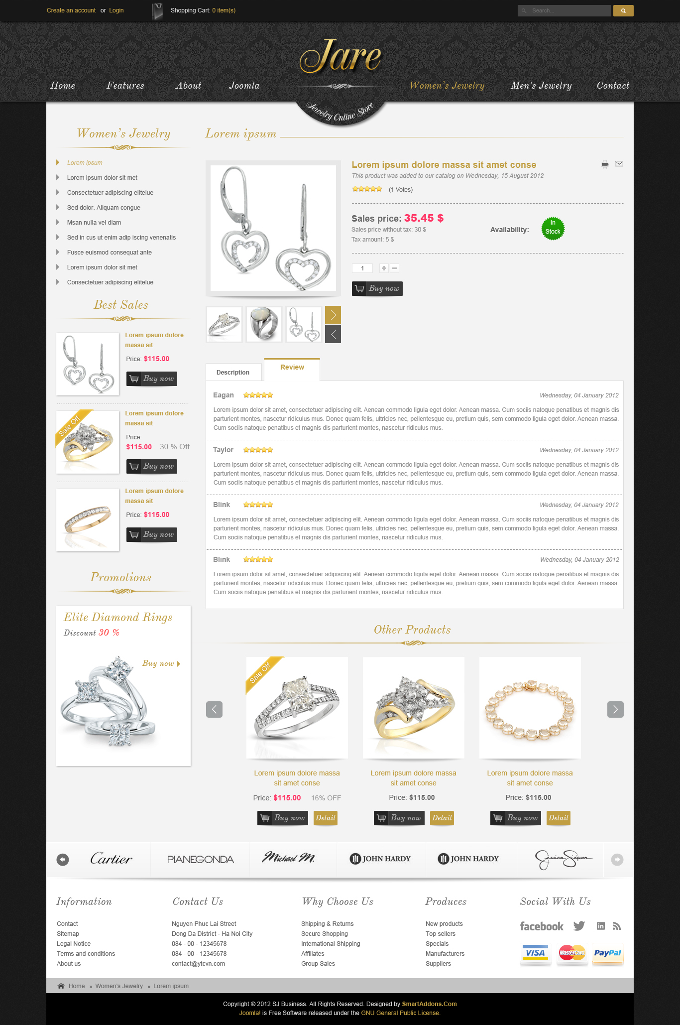 Joomla! articles as reviews and blog for products.