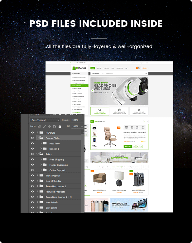 It absolutely brings back to you many awesome experience at once when you surfing our demos. Besides the Mega Menu with multi-columns (sticky Menu: Fixed menu), attractive homepage slider with many smooth effects, multi-language, multi-currency, it also adds more extensions like image popup view, multi colors for any websites’ skin option, improve super faster speed to enhance the customers’ experiences. The easy-to-custom Admin panel and detailed documentation will let you totally build and control your store.