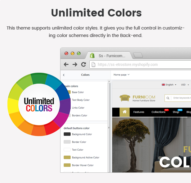 With the Premium Furniture Shopify theme – Furnicom, you can build your own online store with different styles and layouts and you can even do it better. The interior Shopify theme has a powerful and intuitive control panel with Drag & Drop Sections ready that provides a lot of advantage options for store management and customize your site.