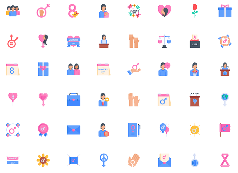 Flaticon has a plenty of free svg, eps, psd, png icons for Women's day designing. Easy to use and customize.