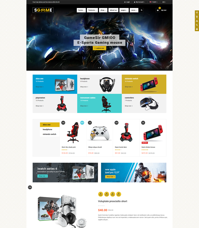 2. SGame - Responsive Accessories, Games Shopify Theme